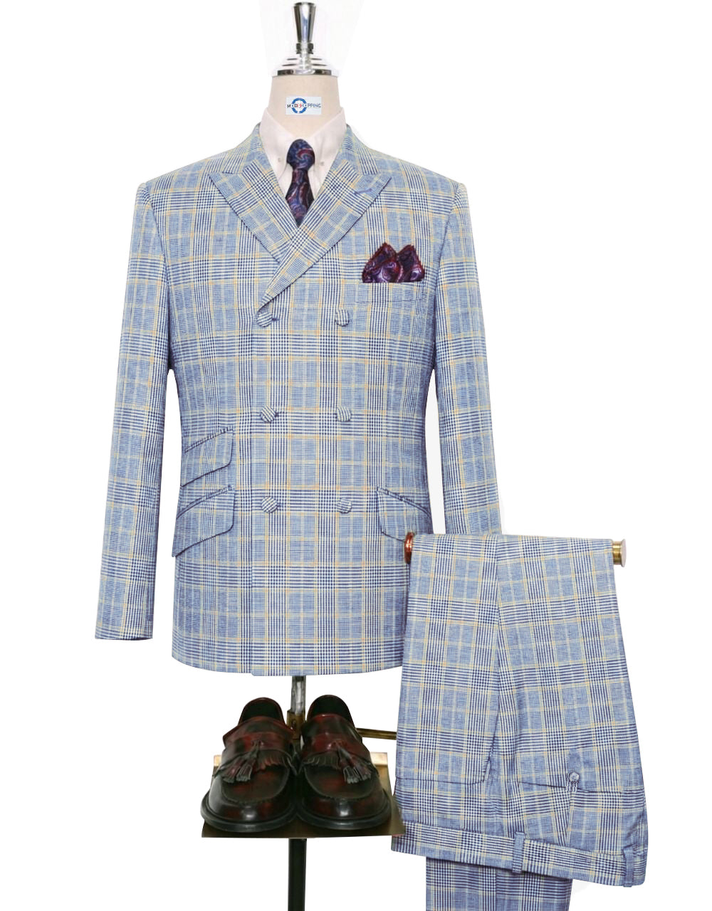 Men’s Navy Blue Glen Check Peak Lapel Suit