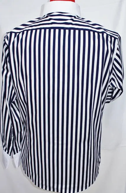 60'S Mod Dark Navy Blue Stripe Pin Collar Shirt