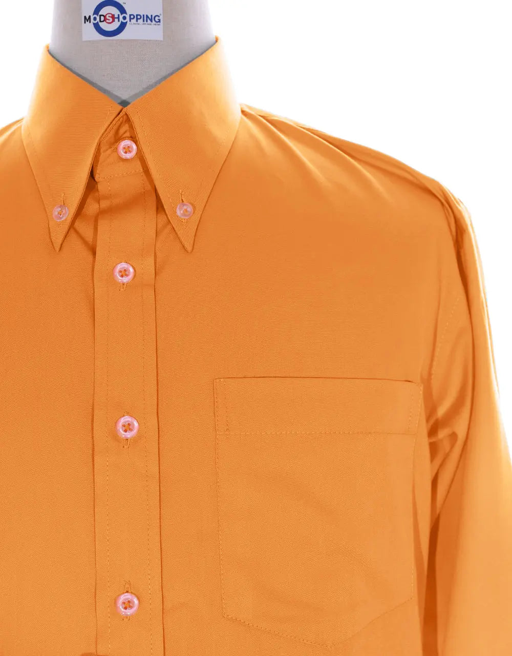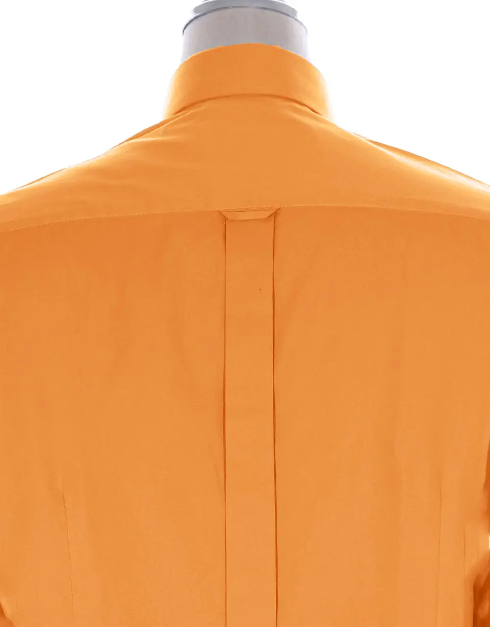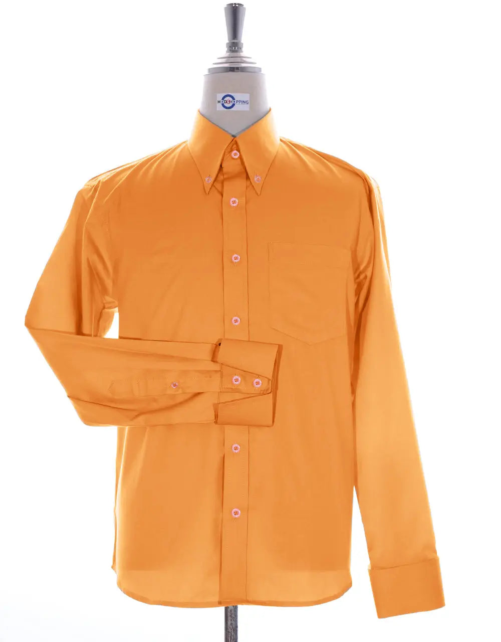 Modshopping classic Men’s tailored made men shirt for any occasion Color: OrangeCollar: Button down long collar Collar length: 3.5 inches Cuff: Milanese cuff detailA unique tailored feel Box Pleat At The Back,