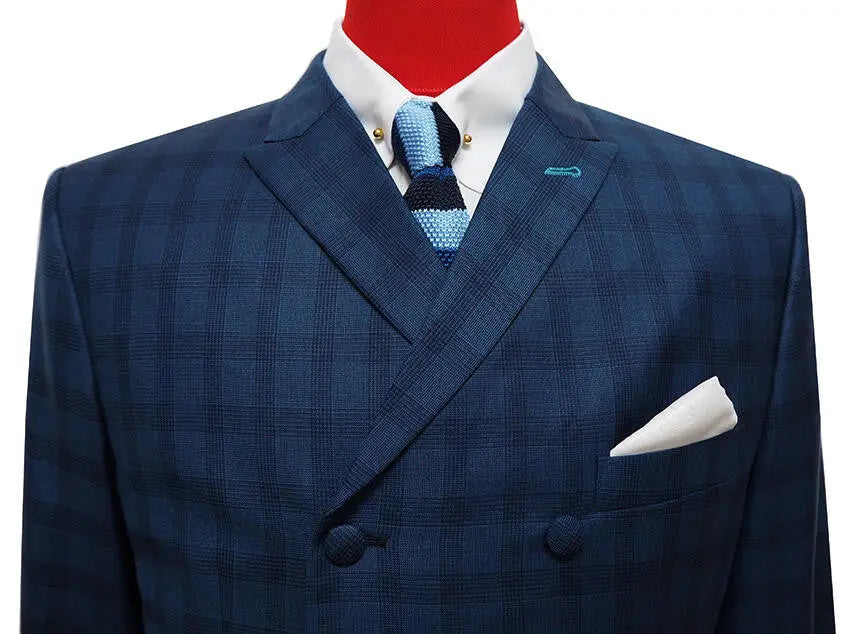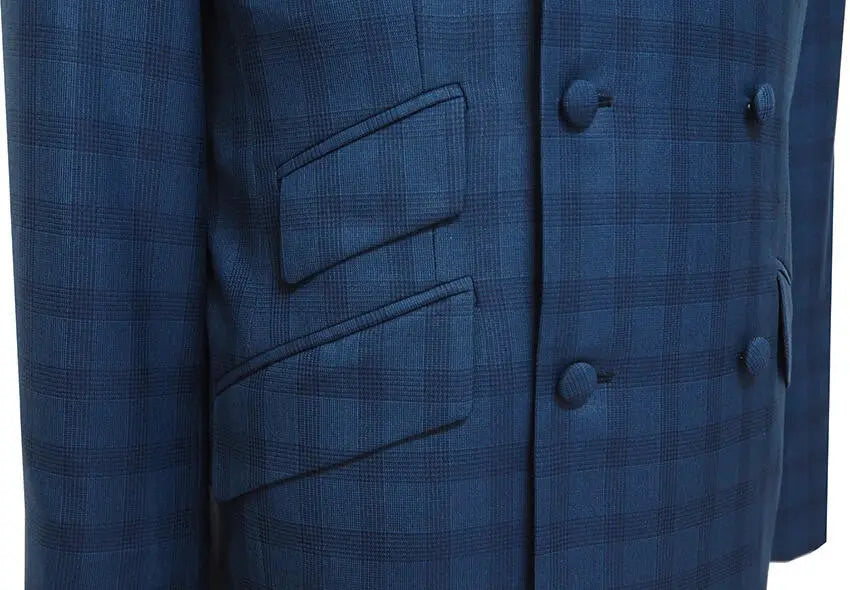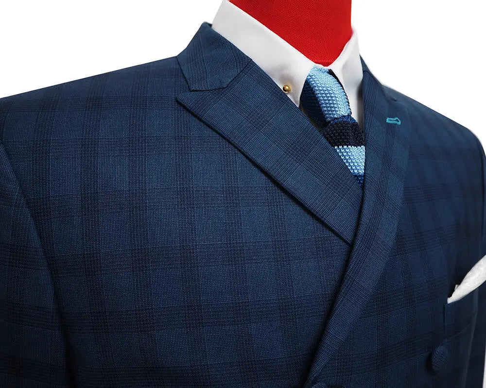 Double Breasted Suit | Navy Blue Prince Of Wales Suit