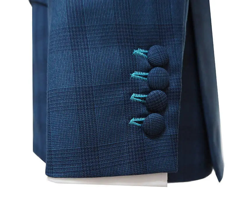 Cloth covered buttons 4 button working cuff witch sky color stitching