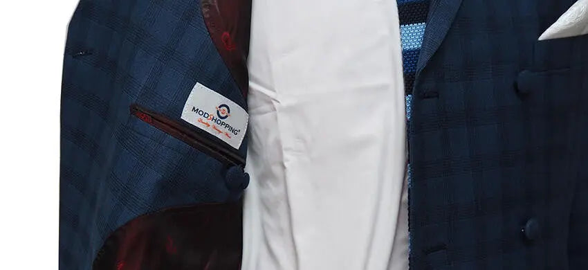 High quality suit made only by modshopping. Trouser:Front frogmouth pocketsTwo flap back pocketFabric Covered buttonfly zip & hook fastening1/2 Lining trouser. Bottom of trouser 15 1/2'' Dry clean only
