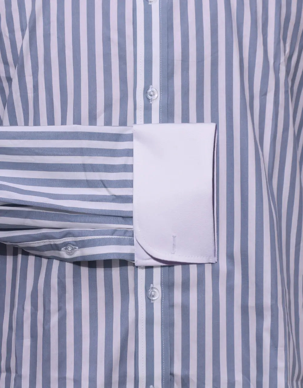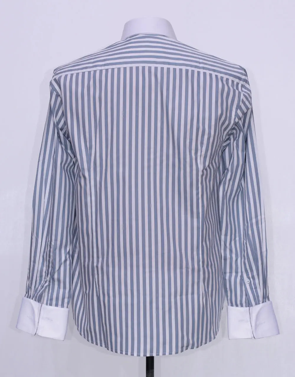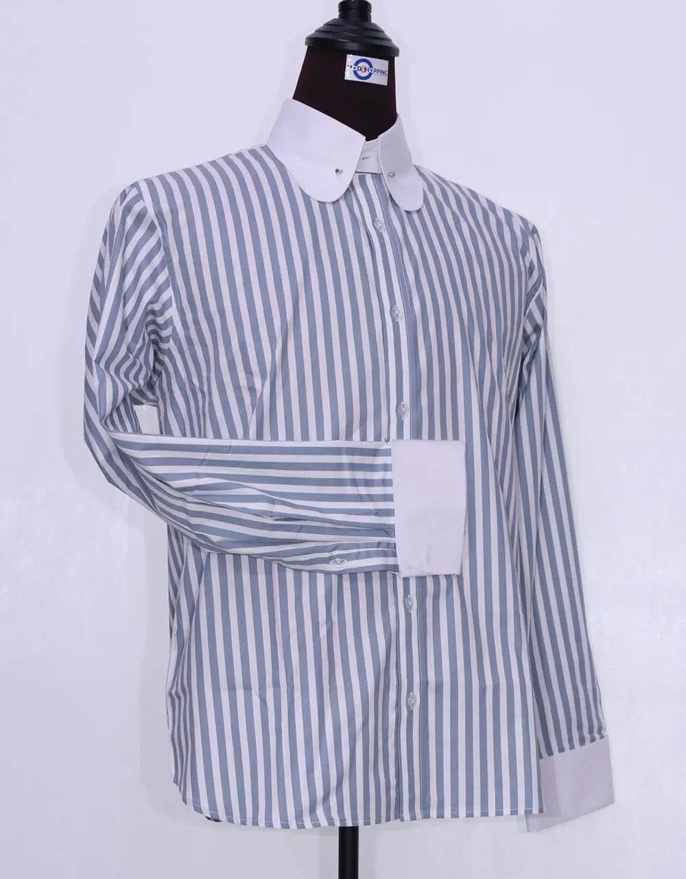 Color: Grey And White StripeCollar length: 3.5Collar: Penny Pin Collar A unique tailored feel The perfect shirt for any occasion. Sixties Mod style penny collar with pin hole. French rounded cuff detail.Stylish fitted cut and self colored button fastenFabric 100% cotton N.B only shirt not including cufflink hand wash & machine wash onlySecure Checkout With