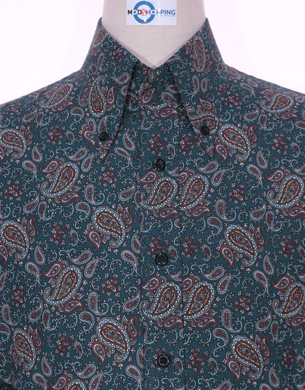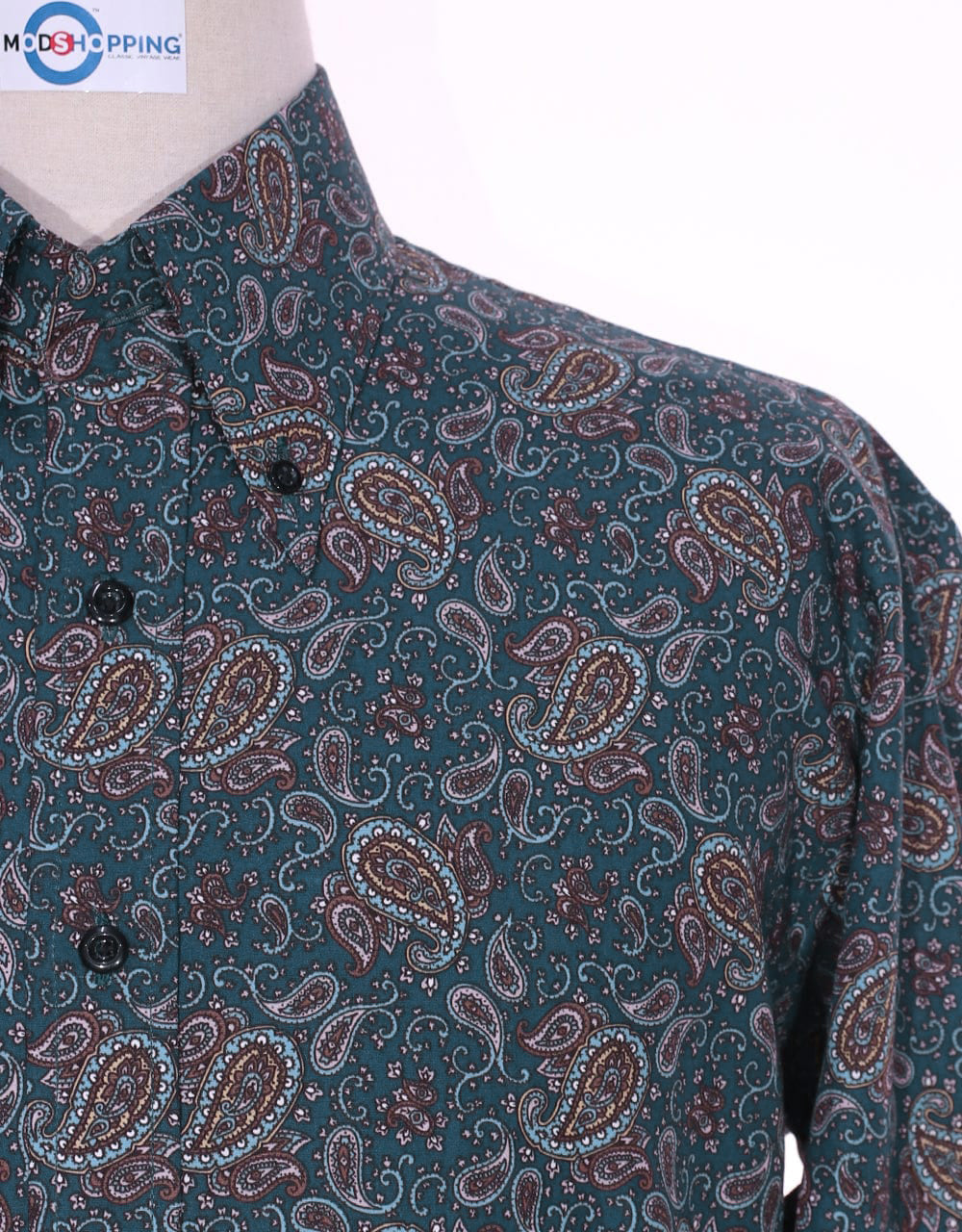 Modshopping 100% Cotton 60s style paisley shirt for men Collar: 4 inches narrow button down collar.Color: Multi colorPattern : PaisleyFabric; 100% cottonGender: Men2 button adjustable cuff darts at the backBrilliant tailored fitted Men’s shirt.hand wash & machine wash only