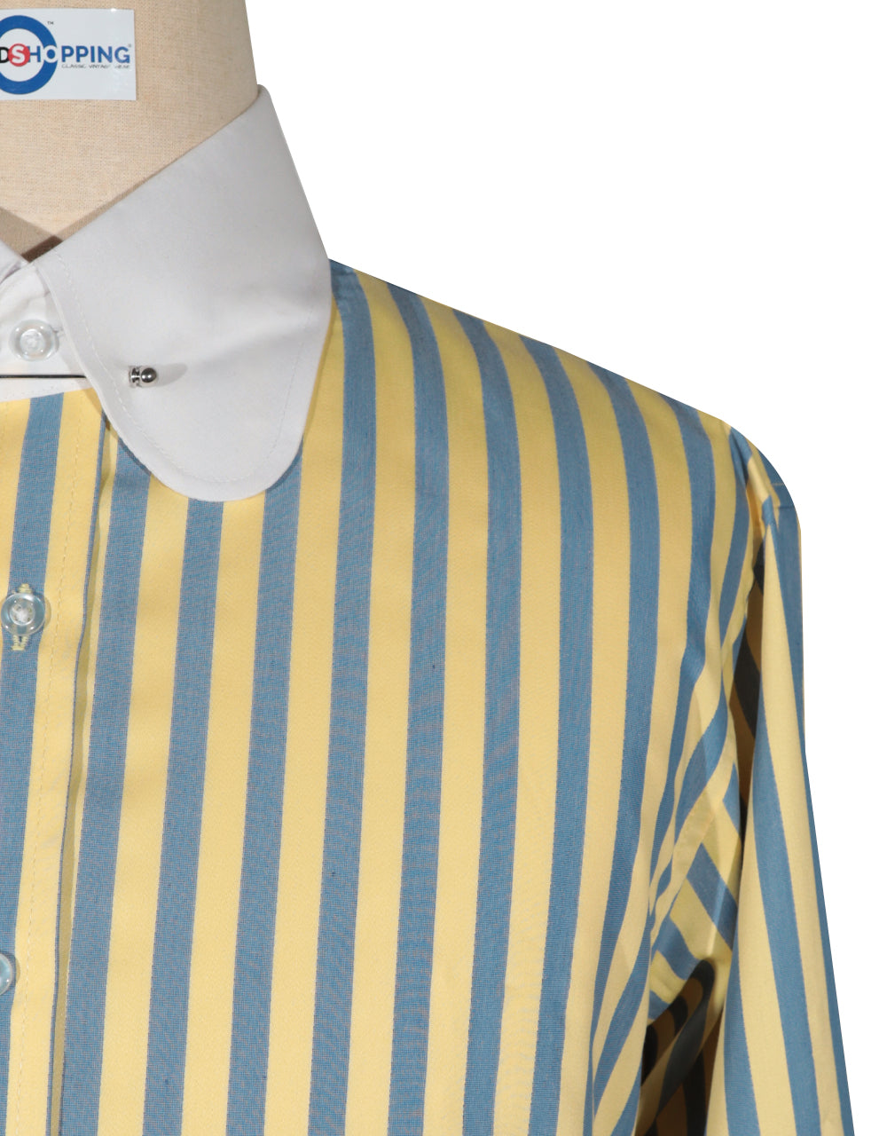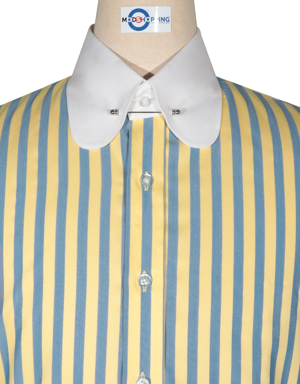 Color: Yellow and Navy Blue Collar length: 3.5 Inches Collar: Penny Pin Collar A unique tailored feel The perfect shirt for any occasion. Sixties Mod style penny collar with pin hole. French rounded cuff detail.Stylish fitted cut and self colored button fastenFabric 100% cotton N.B only shirt not including cufflink hand wash & machine wash onlySecure Checkout With