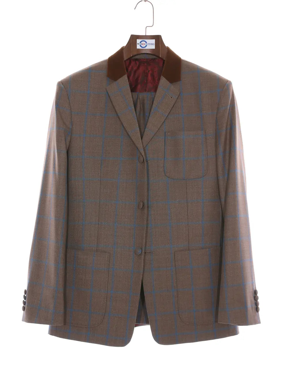 Mod Suit | 60s Style Brown Windowpane Check Suit - 3 Button Suit Men's