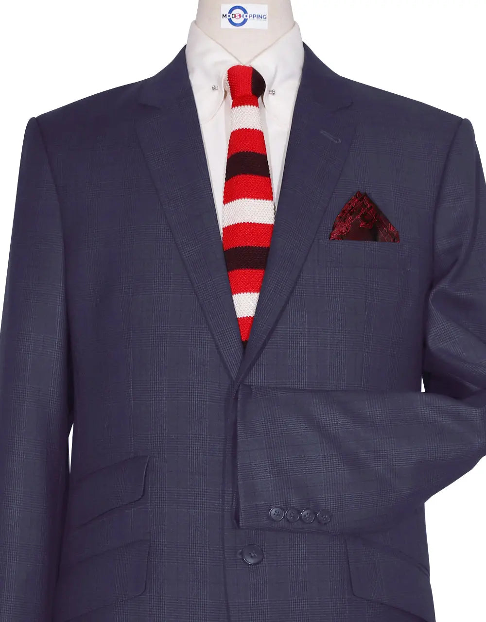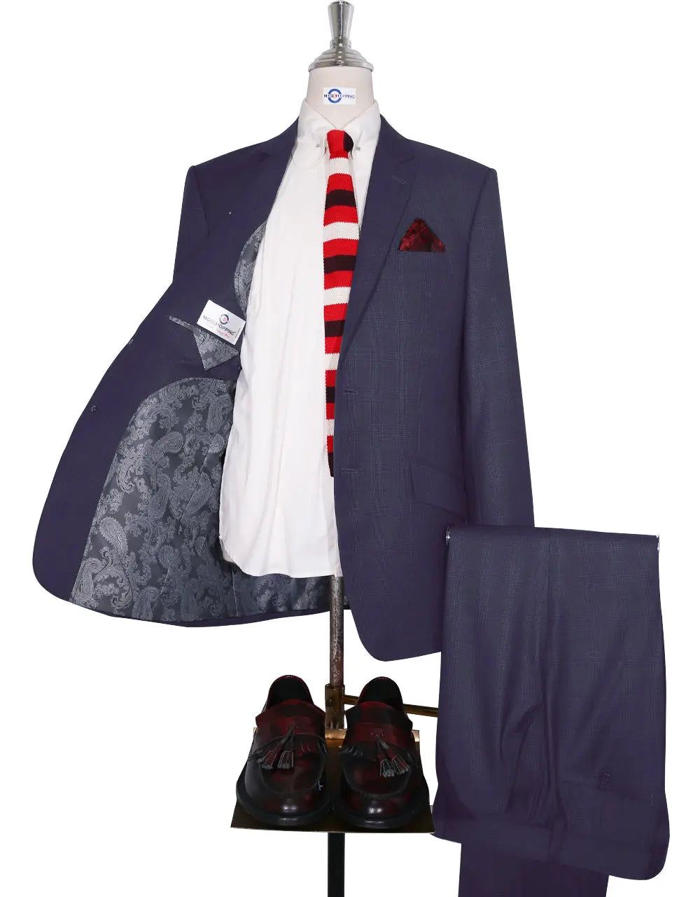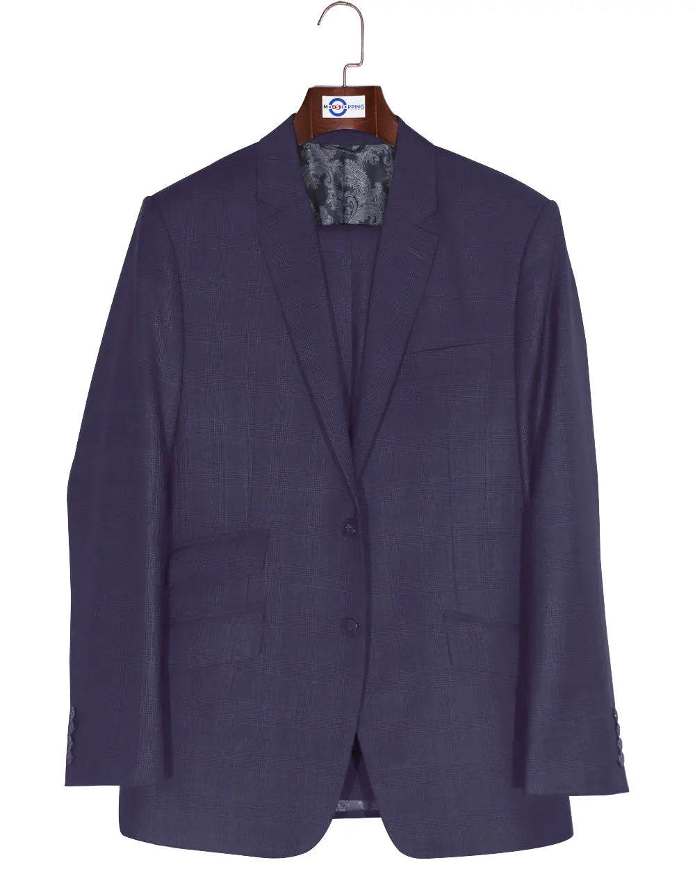 Men's 2 Button Suit - Purple Prince Of Wales Check Suit