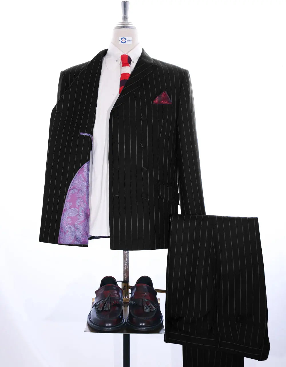 Double Breasted Suit - Vintage Style Black Stripe Suit