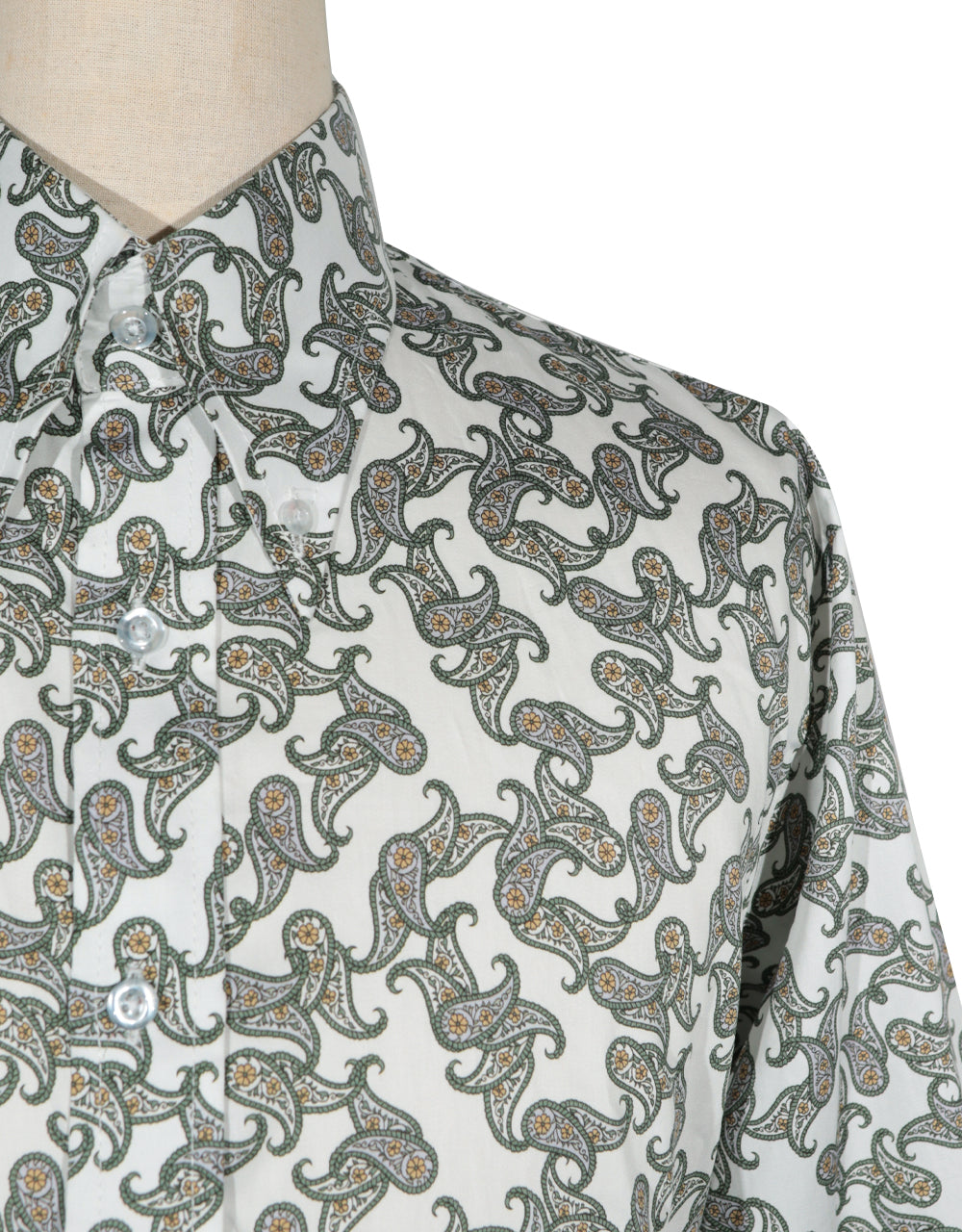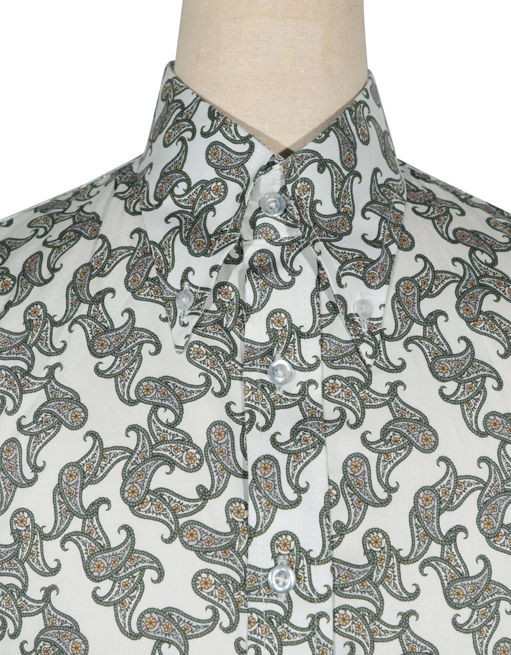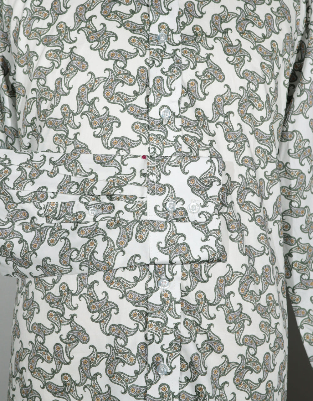 Paisley Shirt - White and Olive Green Paisley Shirt